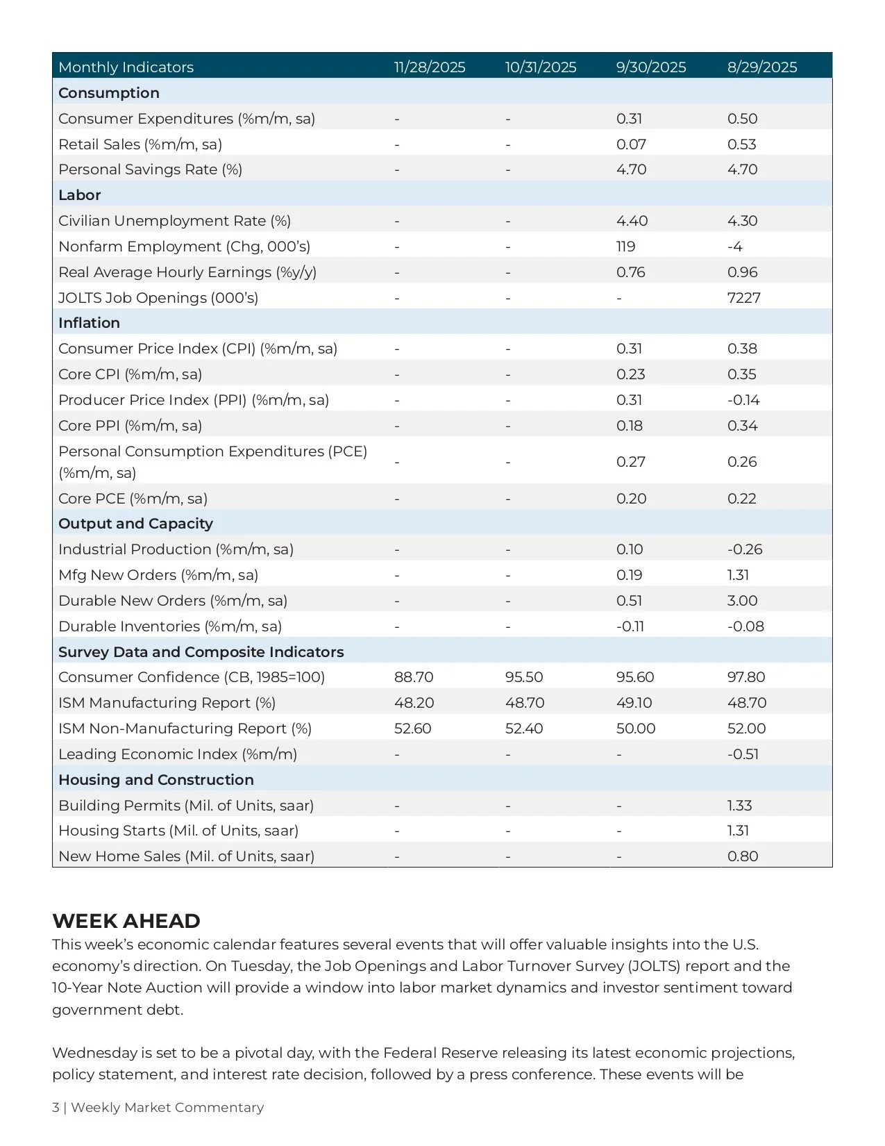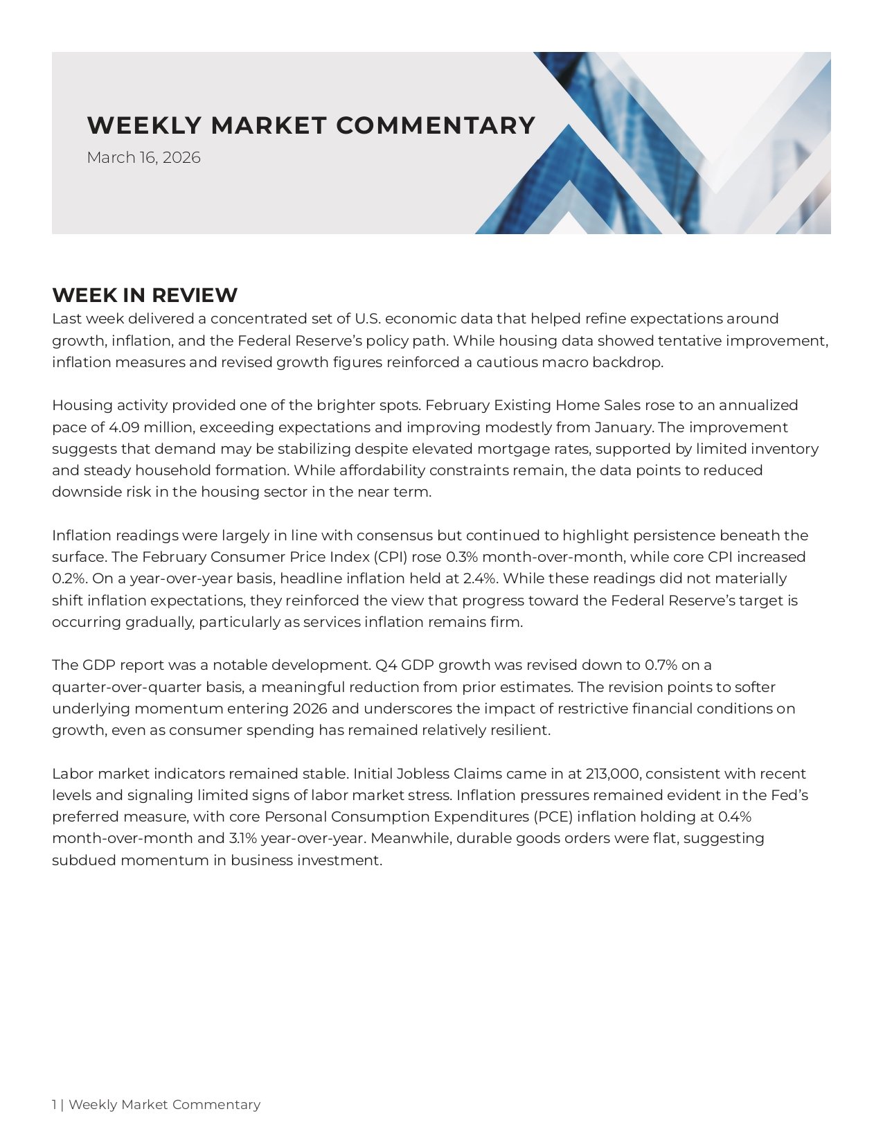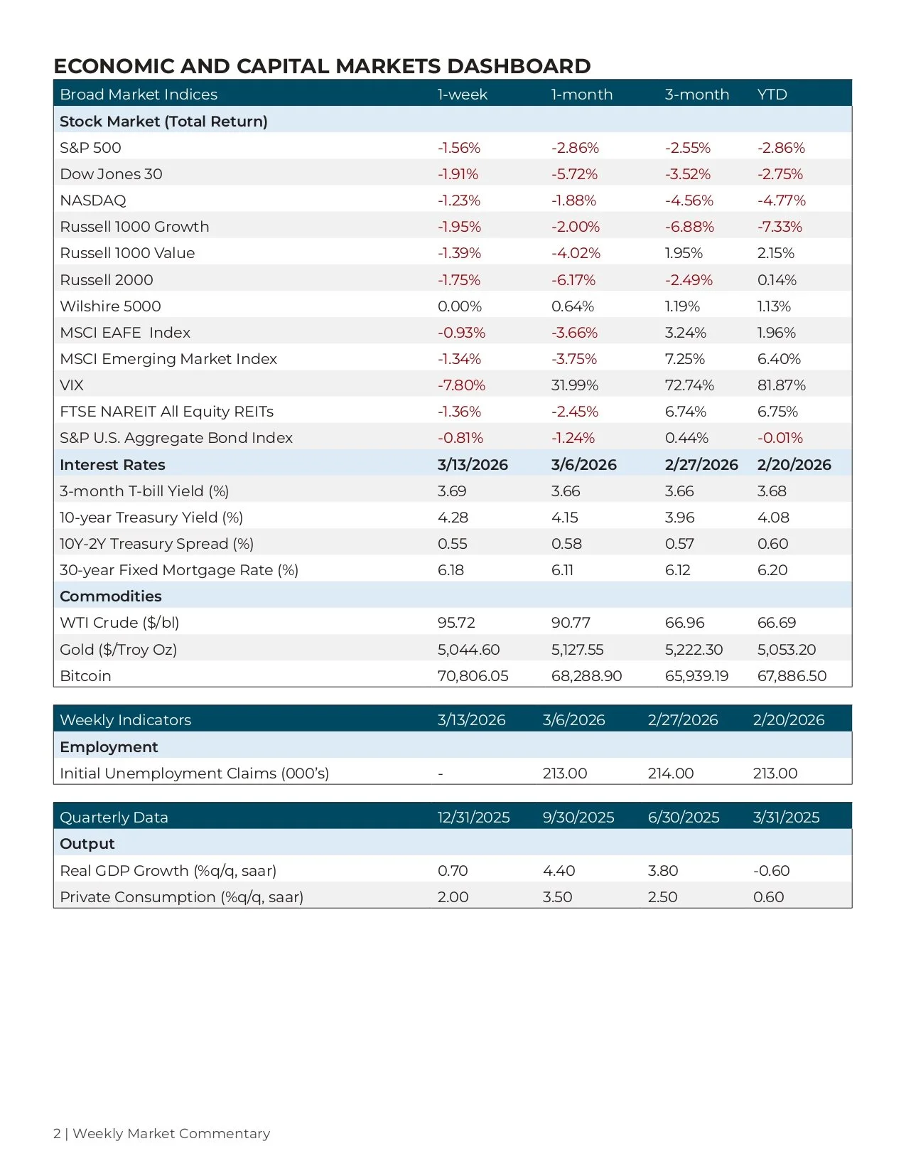 Sign up with your email address to receive a copy of the market update each week